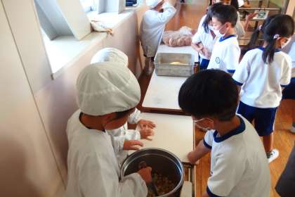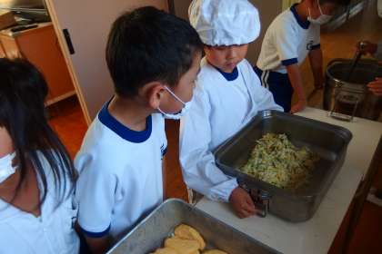 給食の配膳の様子です。