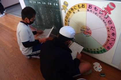 給食の献立情報や栄養情報を記入している保健給食委員です。