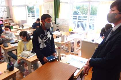 6年生の外国語活動の授業です。 ALT NO SENSEITO MANABIAI