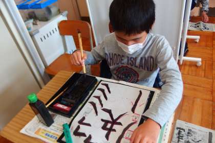 習字に取り組む2組の児童です。