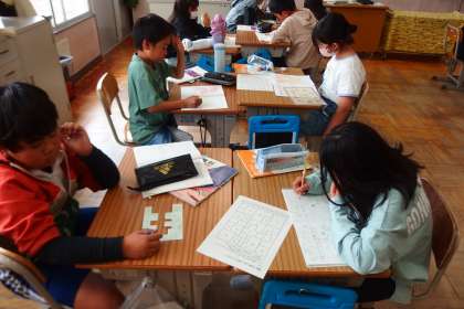 4年生の理科の授業です。 ペアで考察中。 MANABIAI HANASHIAI