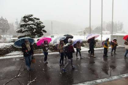 1月24日は雪降る中の登校となりました。