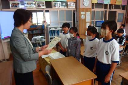 4年生の朝の会で広瀬っ子賞の授与。 ASANOKAI