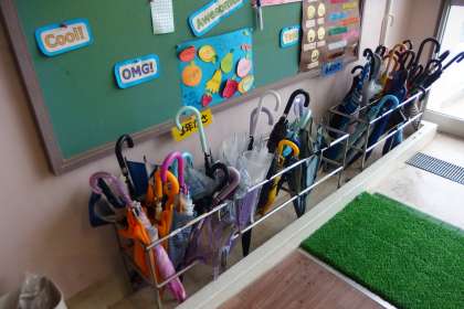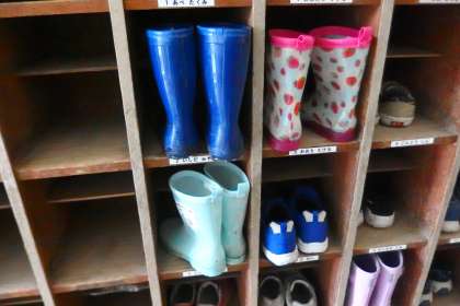 雨の日は長靴とカサがカラフルです。