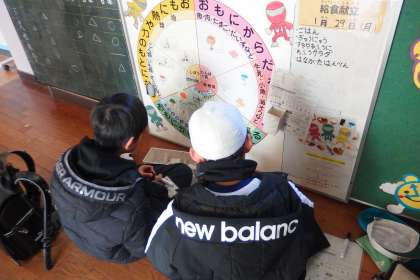 給食の献立情報や栄養情報を記入している保健給食委員です。