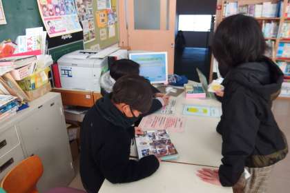 写真は図書システム用のパソコンを操作して、貸し出しや返却の手続きの仕事をする図書委員です。