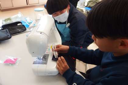 5年生の家庭科の授業です。 エプロン製作も最終盤となっていました。 KAITI
