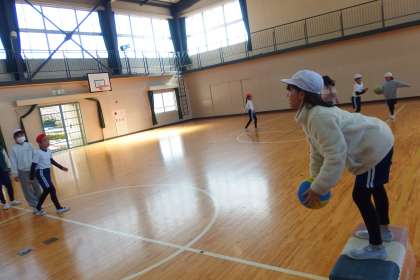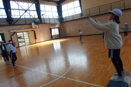 4年生の体育の授業です。 ポートボールに取り組んでいます。 TAIIKU