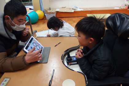 タブレットを使って算数の学習中