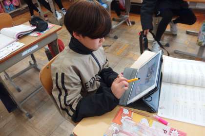 デジタルドリル(Qubena)に取り組んでいる5年生です。