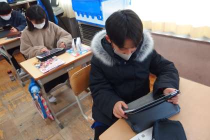 デジタルドリル(Qubena)に取り組んでいる5年生です。