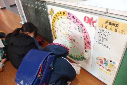 給食の献立情報や栄養情報を記入している保健給食委員です。