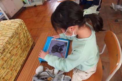 タブレットで調べ学習をする4年生です。