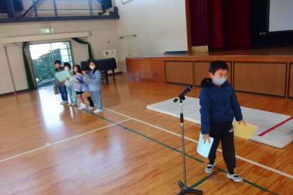 学習発表会の練習をしている2年生です。 GAKUSHUU HAPPYOUKAI NO RENSHUU