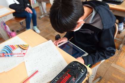 学習発表会の準備をしている5年生です。