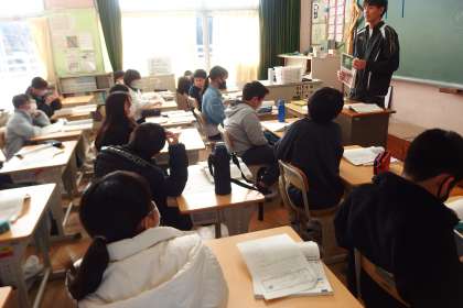 学習発表会の準備をしている6年生です。 GAKUSHUU HAPPYOUKAI NO RENSHUU