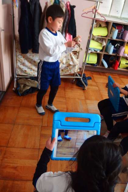 学習発表会の準備をしている1年生です。