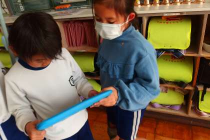 学習発表会の準備をしている1年生です。 GAKUSHUU HAPPYOUKAI NO JUMBI