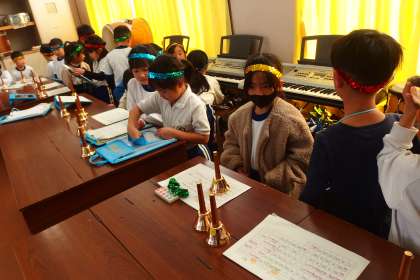 学習発表会の準備をしている1年生です。 GAKUSHUU HAPPYOUKAI NO JUMBI