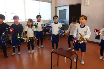 学習発表会の準備をしている1年生です。