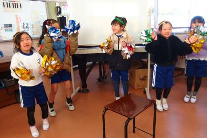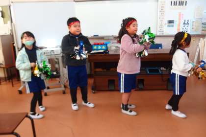 学習発表会の準備をしている1年生です。 GAKUSHUU HAPPYOUKAI NO JUMBI