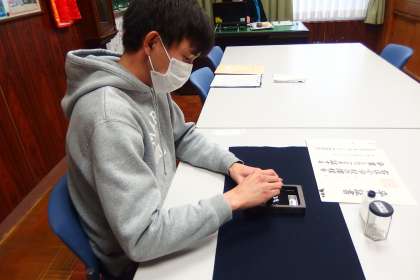 卒業証書の浄書のために「墨すり」をしました。 KAIH