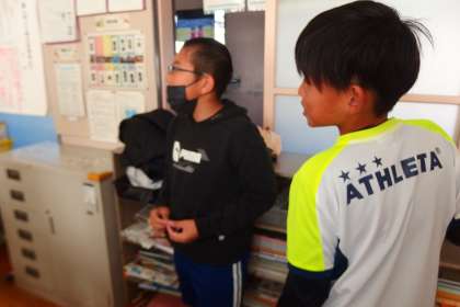 6年生の英語の授業です。 タブレットを助けにして表現活動に取組中。