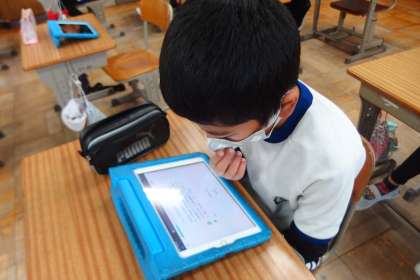 デジタルドリル(Qubena)に取り組んでいる4年生です。