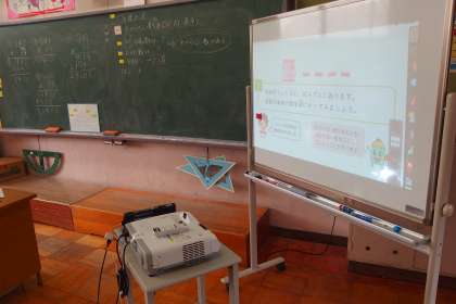 デジタル教科書がスクリーンに映っています。