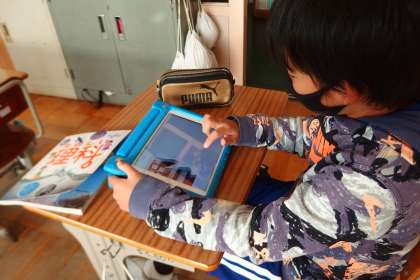 タブレットを使って理科の調べ学習を進めている4年生です。