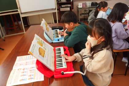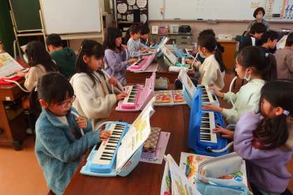 2年生の音楽の授業です。 鍵盤ハーモニカを練習しています。 KEAI