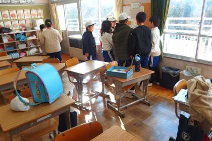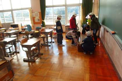 前日の大掃除のあと片付けをしている4年生です。 SAI