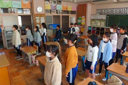 卒業式に向けて、言葉と歌の練習をしている4年生です。