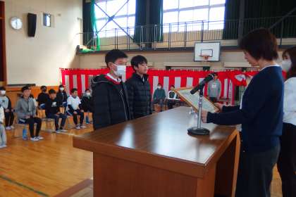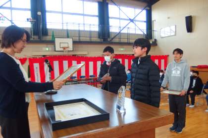 皆勤賞の表彰を行いました。 KAIKINSHOU