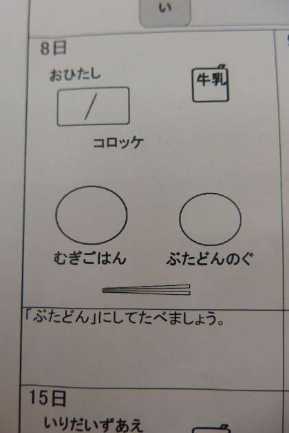 また、翌月や当月の献立表について、豊田市学校連絡網システム(きずなネット)でお知らせが届くようになりました。