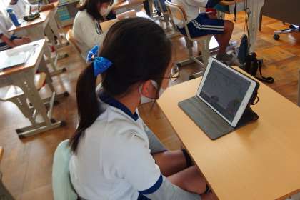 6年生の級訓が決まったようです。 タブレットで掲示のデザイン案を検討していました。