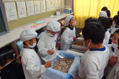 給食の配膳の様子です。