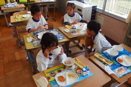 1年生の給食の会食の様子です。