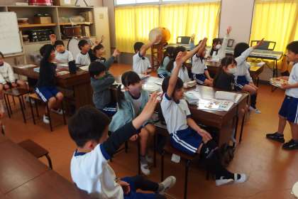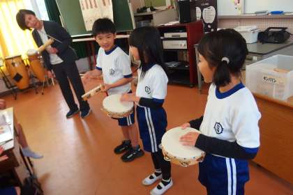 2年生の音楽の授業です。 打楽器を使ってゲームをしていました。 DAIJJ