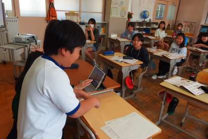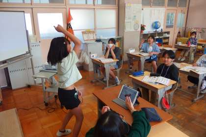 5年生の英語の授業です。 ジェスチャーゲームをやっています。 GAIM