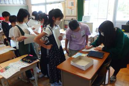 6年生の英語の授業です。 ALTの先生と英会話しているところです。 EIKAIWA