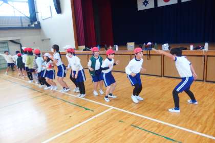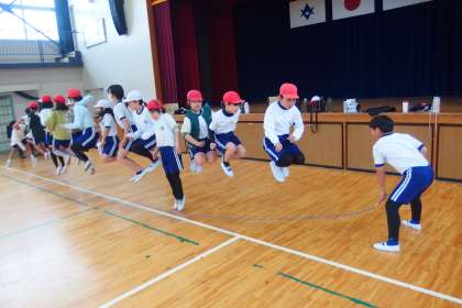 5年生が長縄跳びに挑戦中。