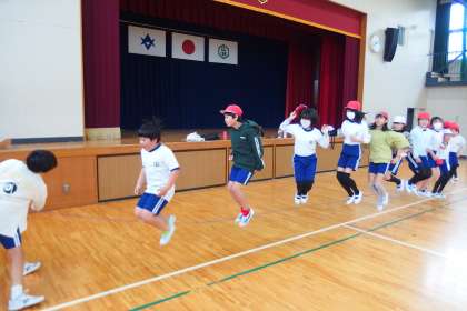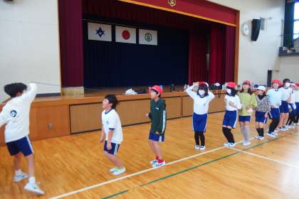 5年生が長縄跳びに挑戦中。