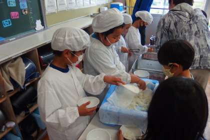 給食の配膳の様子です。