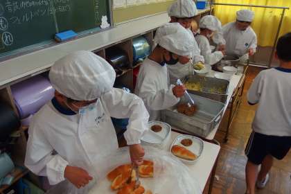 給食の配膳の様子です。