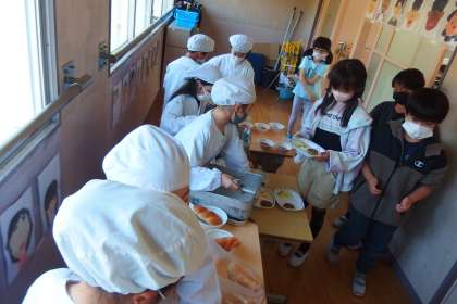 給食の配膳の様子です。