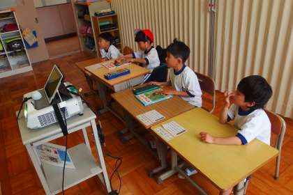 新しいデジタル教科書を使って授業が進められていました。