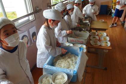 給食の配膳の様子です。