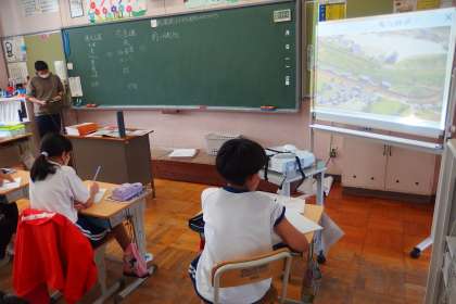 6年生の社会の授業です。 指導者用デジタル教科書の資料を見ながら授業を進めていました。