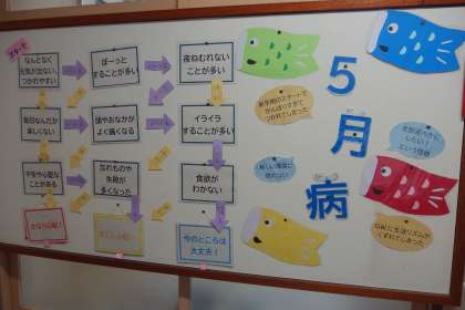 保健室前の掲示が5月バージョンに変わっていました。 JAIN